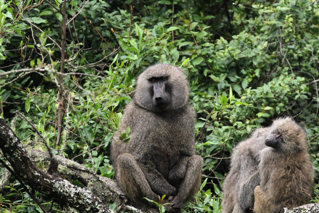 Elephant, Giraffe, Impala, Bush Buck, Blue Monkey, Baboons, Velvet Monkey