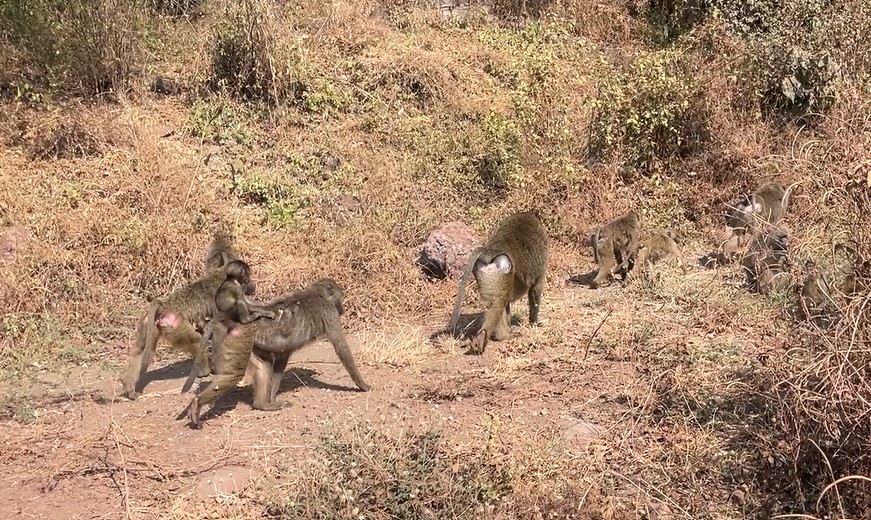 Black Rhinos, Zebra, Thomsen’s Gazelles, Impala, Elephants, Baboons, Cape Buffalo, lots of hippos, lots of wildebeests, lioness, warthog, jackal, hyena, velvet monkey