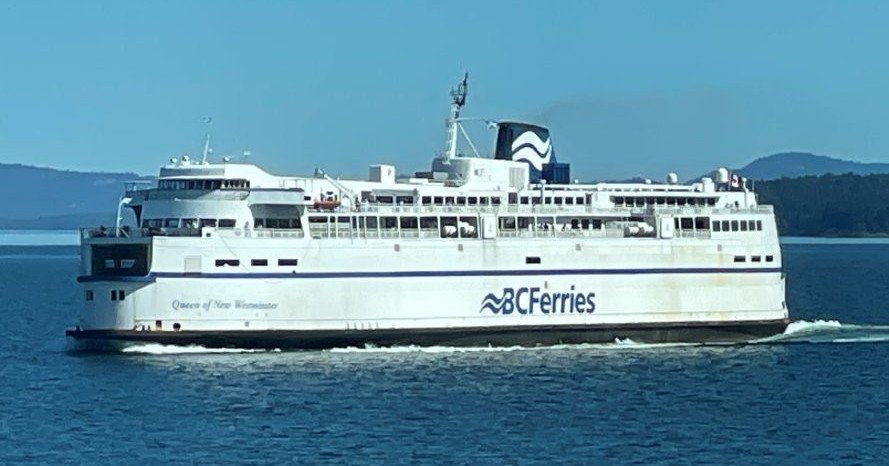 BC Ferries' Queen of New Westminster Ferry cruising toward Vancouver Island across the Salish Sea