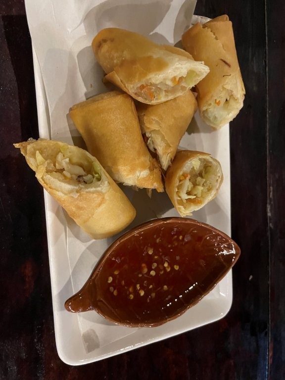 Look how affordable food at the night market is! Fried shrimp for 25฿ = approximately 72 US cents. Chicken roll for 20฿ = approx. 58 cents. Vegetable Spring roll for 15฿ = approx. 43 cents.